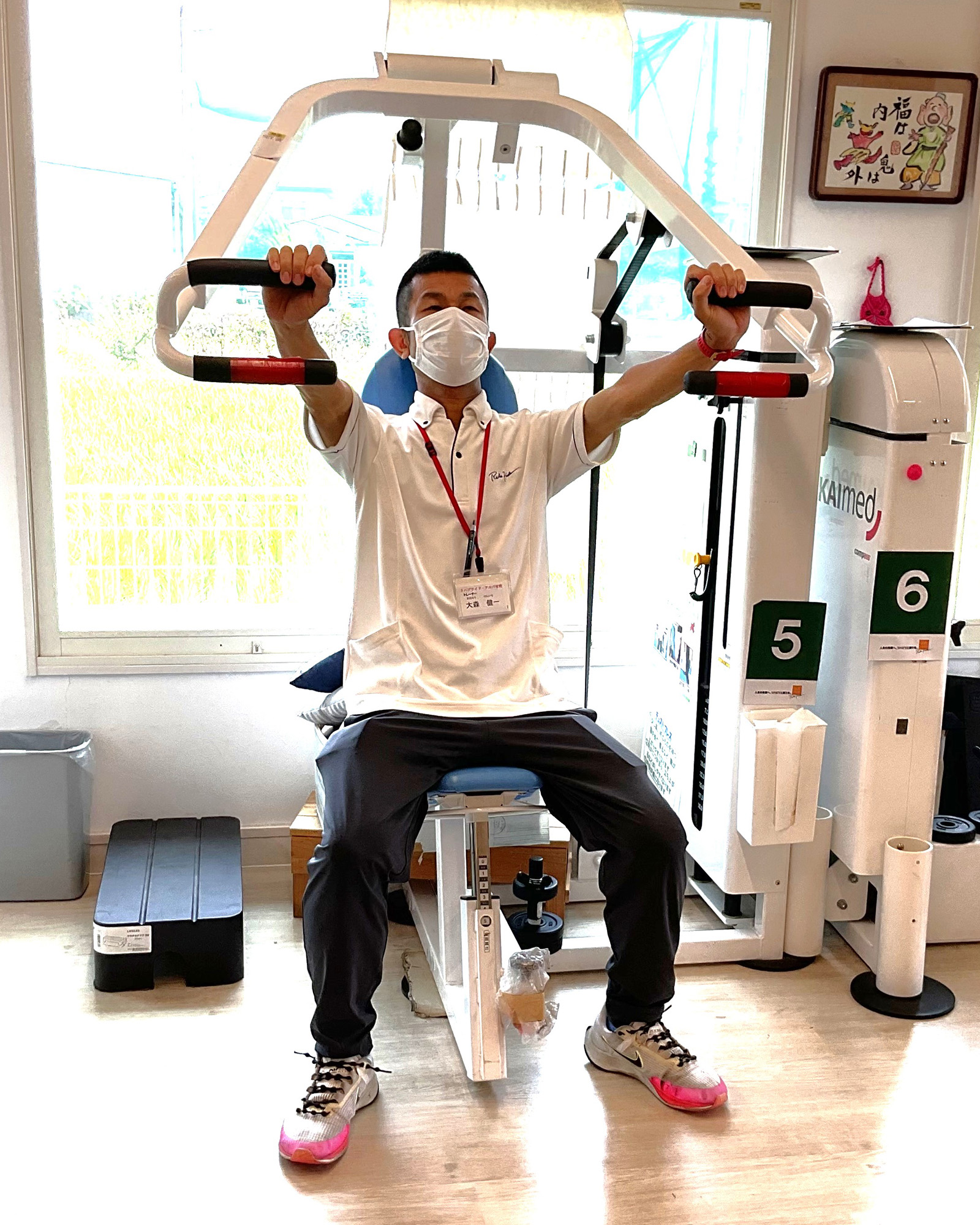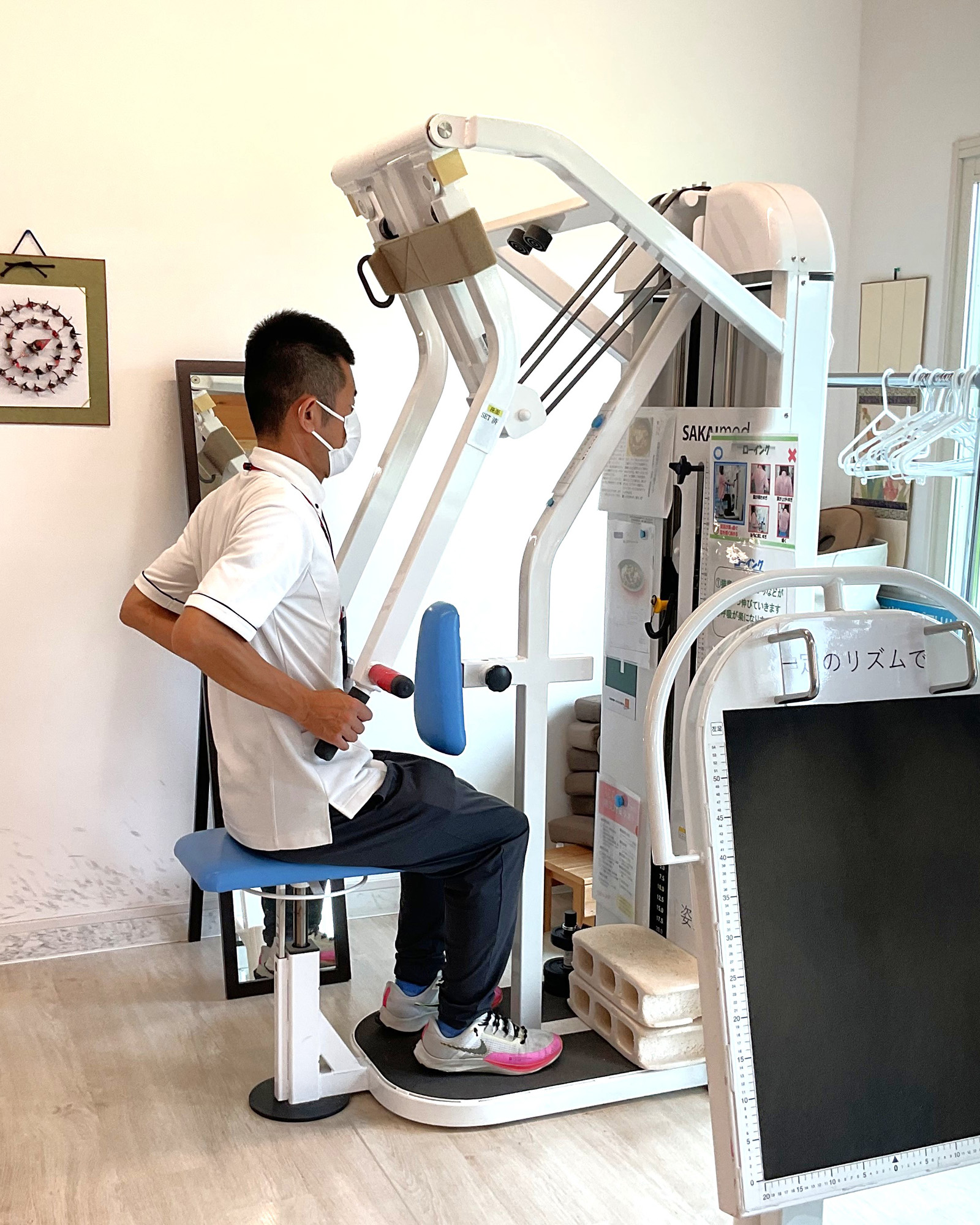 ドイツ生まれのメディカルトレーニングマシン6台を使用し、「座る」「立つ」「歩く」といった生活の基本動作に必要な筋肉へ刺激を与えます。